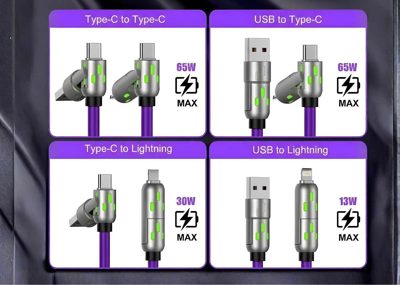 - 4-in-1 Universal Compatibility: USB-A & USB-C to USB-C, Lightning, and more.