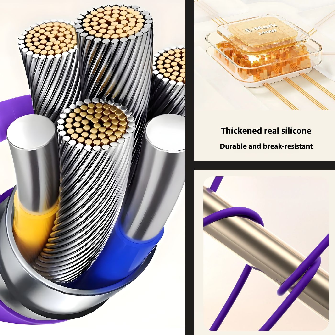 Up to 240W fast charging in a single cable designed to power phones, tablets, and laptops without the mess.